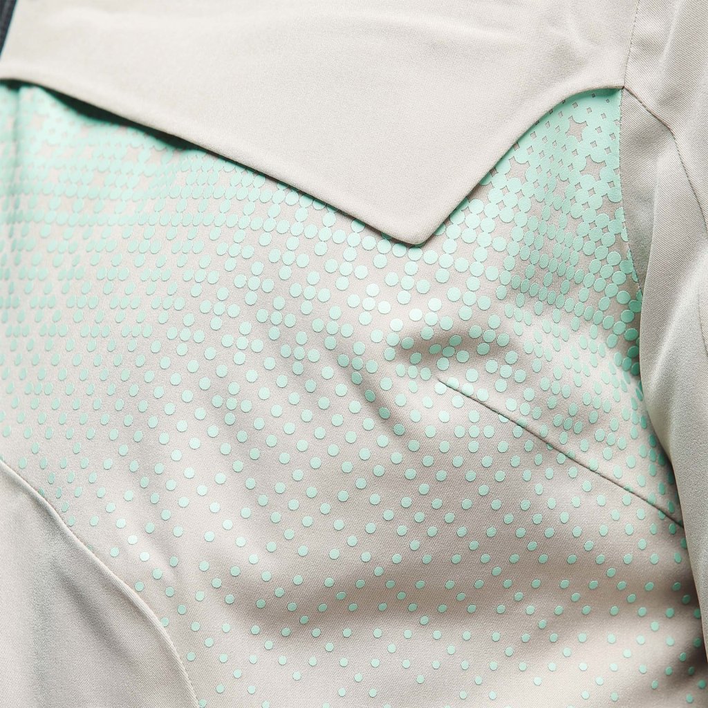 Odnímatelná izolační vrstva umožňuje nosit bundu i během teplejších dnů, aniž by ztratila svou funkčnost. Integrovaná pevná kapuce eliminuje nepříjemné třepotání ve vysoké rychlosti a větrací otvory v podpaží nastavitelné zipem pomáhají efektivně regulovat tělesnou teplotu. Vnitřní návleky v pase a sněhové manžety uvnitř rukávů doplňují výbavu bundy navržené pro lyžování v jakýchkoli podmínkách.