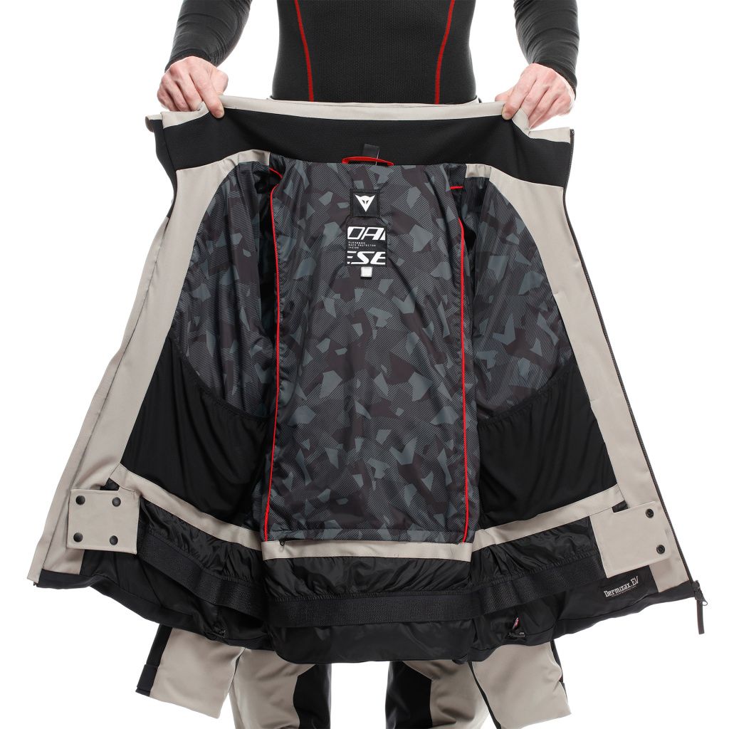Výkon, pohodlí a ochrana jsou hlavními přednostmi bundy Levita Dermizax EV™ Flexagon, špičkového modelu z kolekce Dainese s integrovaným chráničem Flexagon Level 2. Tato bunda je určena pro lyžaře, kteří požadují maximální ochranu před povětrnostními vlivy i nárazy. Je vyrobena z japonské tkaniny Toray Dermizax® s parametry 20 000 mm / 20 000 g/m²/24 h – vysoce prodyšné a voděodolné membrány.